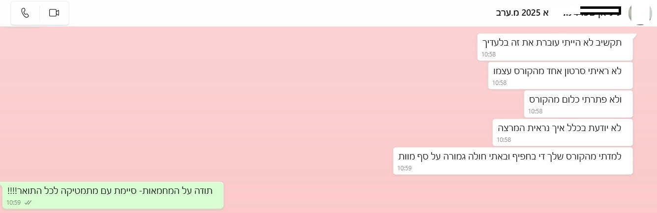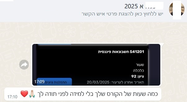 | 3 קורסים | 270 שח הנחה ס”ה | קוד הקופון הוא: מבצע טריפל פרטים: 3 קורסים ב 780 שח (במקום 1050) |