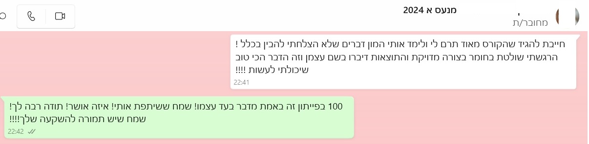 הקורס יילמד אתכם את כל החומר- גם אם לא הייתם באף שיעור.