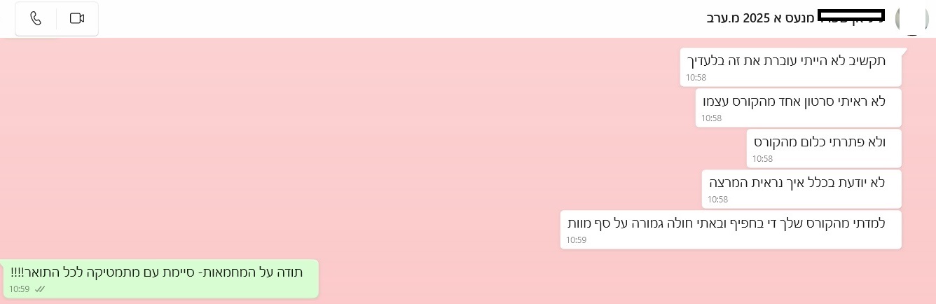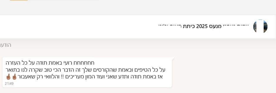 ב 2025 מתכונת הקורס השתנתה: נוספו 3 נושאים חדשים (אל דאגה- הם הוקלטו לתוך הקורס המקוון המעודכן).