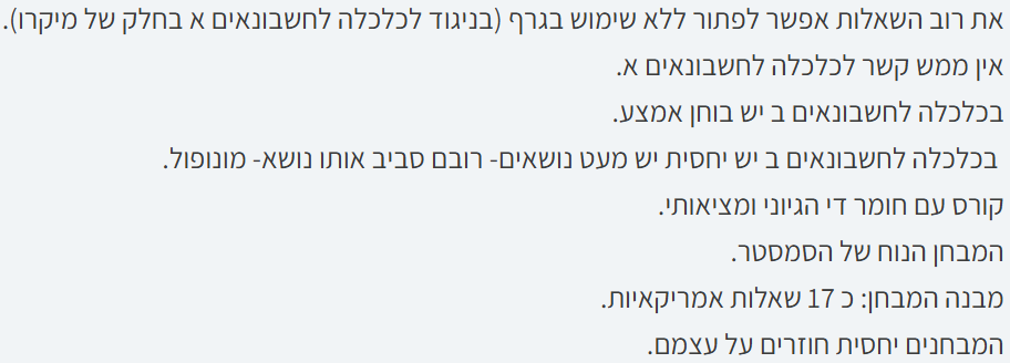 95% מהשאלות ייפתרו בקלות במהלך הקורס המקוון ללא שימוש בגרף.