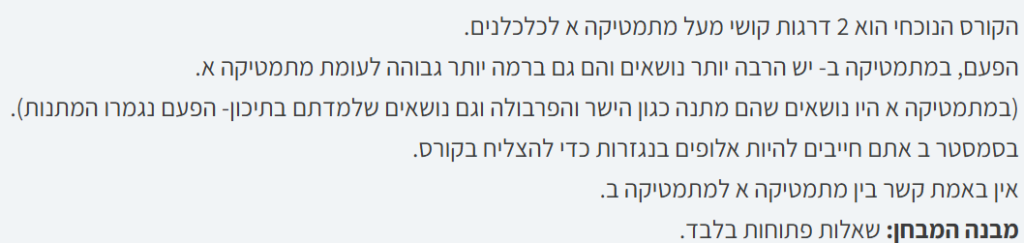 מתמטיקה לכלכלנים ב לשנת 2025- שנה א כלכלה, המכללה למנהל