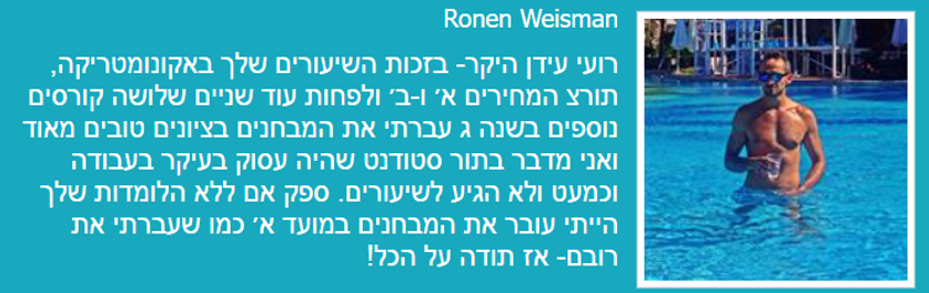 הידעתם? לפני מספר שנים העברתי לימודיות רשמיות מטעם אגודת הסטודנטים בביה”ס לכלכלה, המכללה למנהל גם בקורס תורת המחירים א + ב